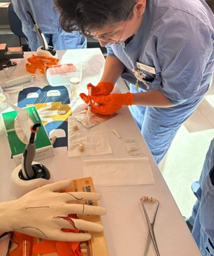 The session, led by Michael Malkoch, combined a technical walkthrough with a hands-on demonstration, allowing surgeons to directly apply the composite and observe its intraoperative behaviour.